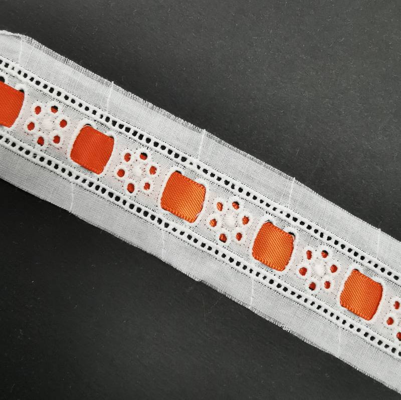 Les galons en broderie anglaise, souvent brodées de motifs floraux ou géométriques, sont utilisées pour orner les bords des vêtements, des accessoires et du linge de maison. Les galons peuvent être intégrés directement dans le tissu ou appliqués en bordure pour souligner des contours ou créer des contrastes visuels. Ils apportent une touche de sophistication et de raffinement aux créations, tout en mettant en valeur la finesse de la broderie. Chez Macasports à Lyon et en ligne, nous proposons un très large choix de bandes et galons en broderie anglaise.